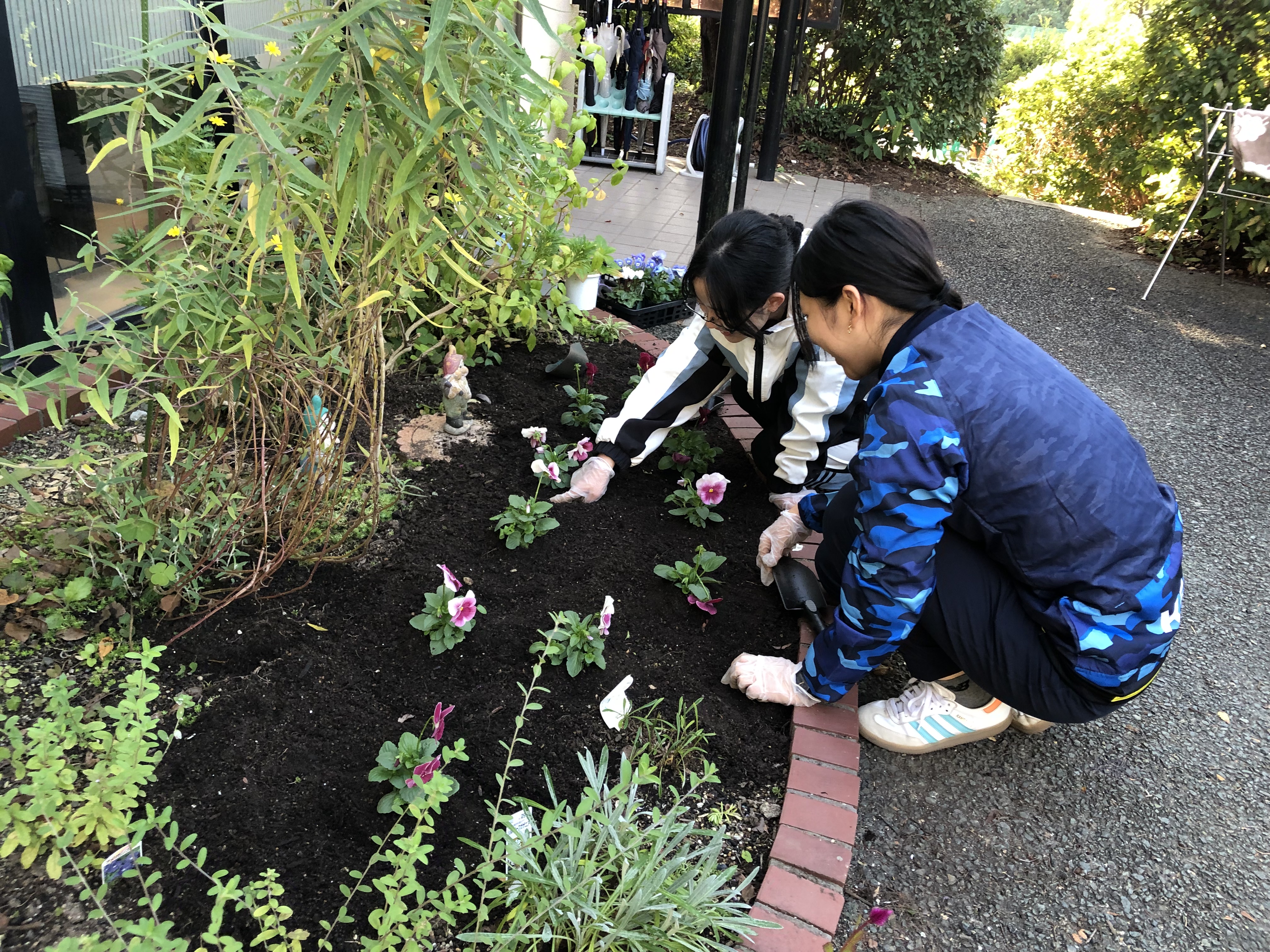 月に1回程度、のんびりとした雰囲気の中で活動しています。センター前の花壇にお花を植えたり、手入れをしたりすることがメインの活動で、冬には室内で楽しめる活動を企画予定です。